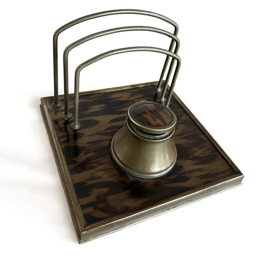 Mid Century Modern Tortoiseshell Inkwell Stand Desktop Letter Organiser