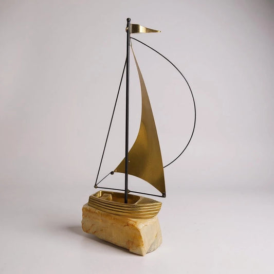 Mid Century Modern Onyx Mounted Brass Boat Sculpture