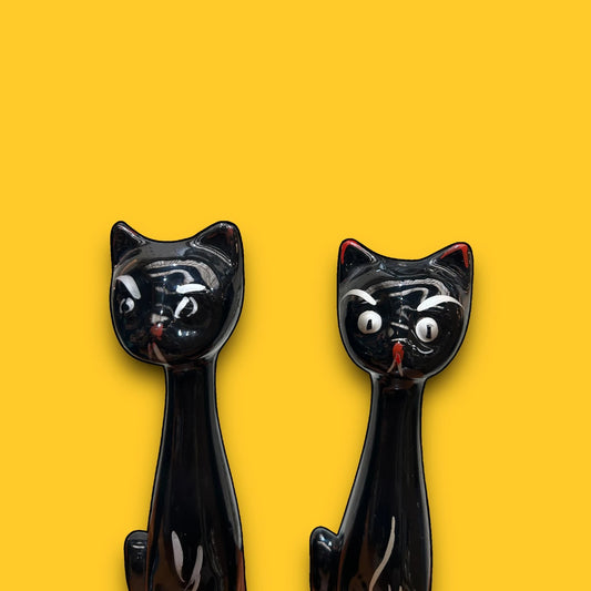 Mid Century Pair of Ceramic Black Cats