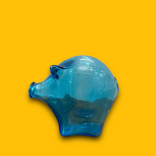 Mid Century Blue Glass Piggy Bank