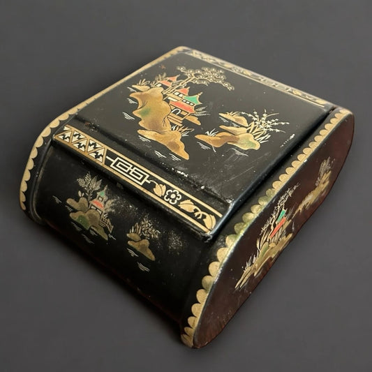 Vintage 1950s Chinese black lacquered jewellery box