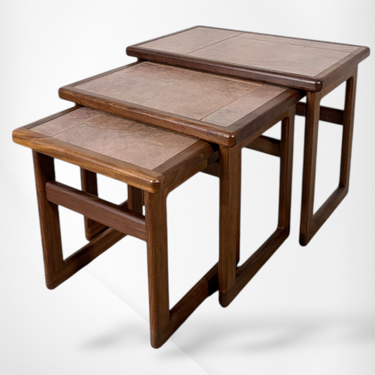 Mid Century Teak Tables – Nesting Side Tables with Ceramic Tile Tops | Scandinavian Vintage