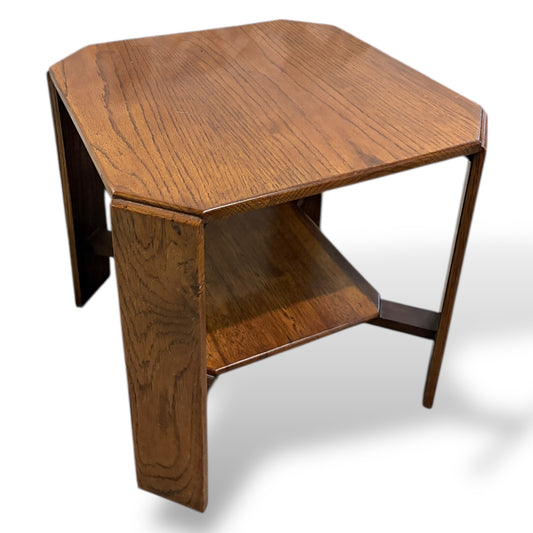 Arts & Crafts Oak Occasional Side Table with Lower Shelf – Vintage Solid Oak Side Table