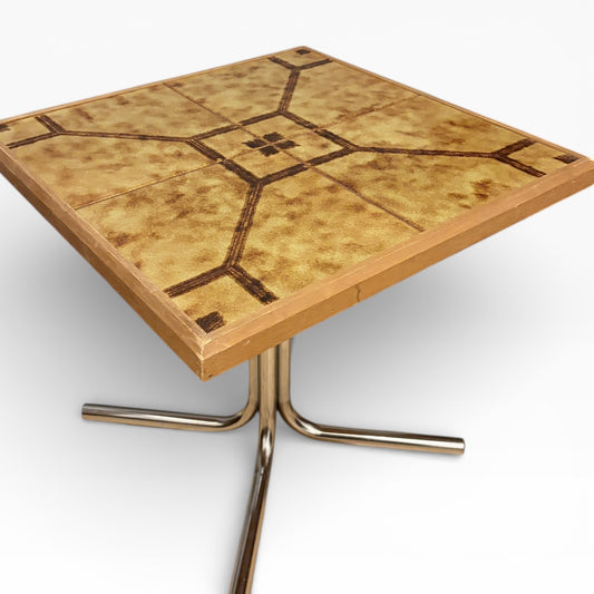 Danish Side Table – Mid Century Table with Ceramic Tile Top & Chrome Base