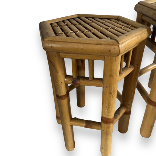 mid century pair of bamboo nesting tables