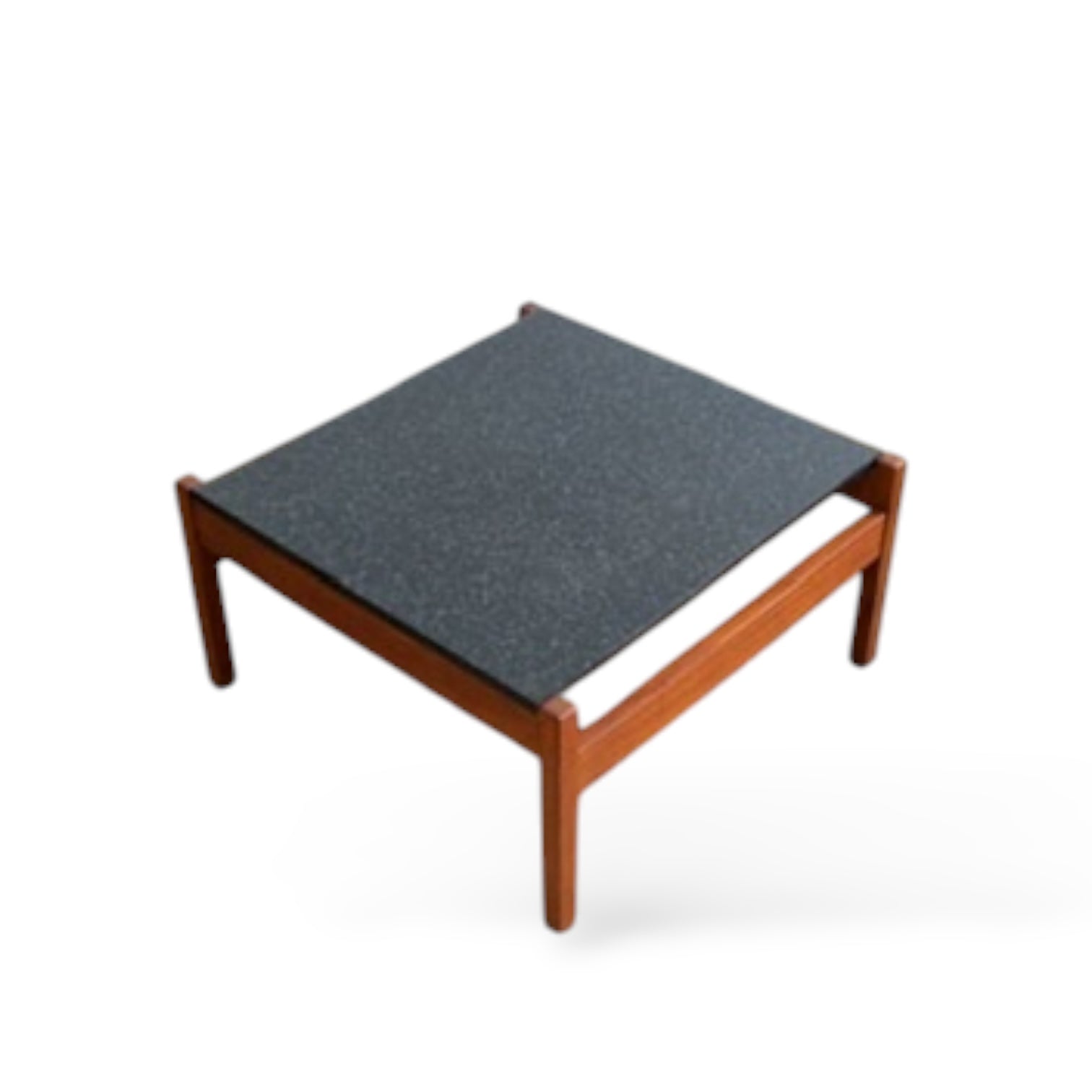 Constructed with an elegant afromosia frame and a contrasting black-and-white speckled laminate top, this compact table captures the clean-lined British modernist aesthetic of the period.