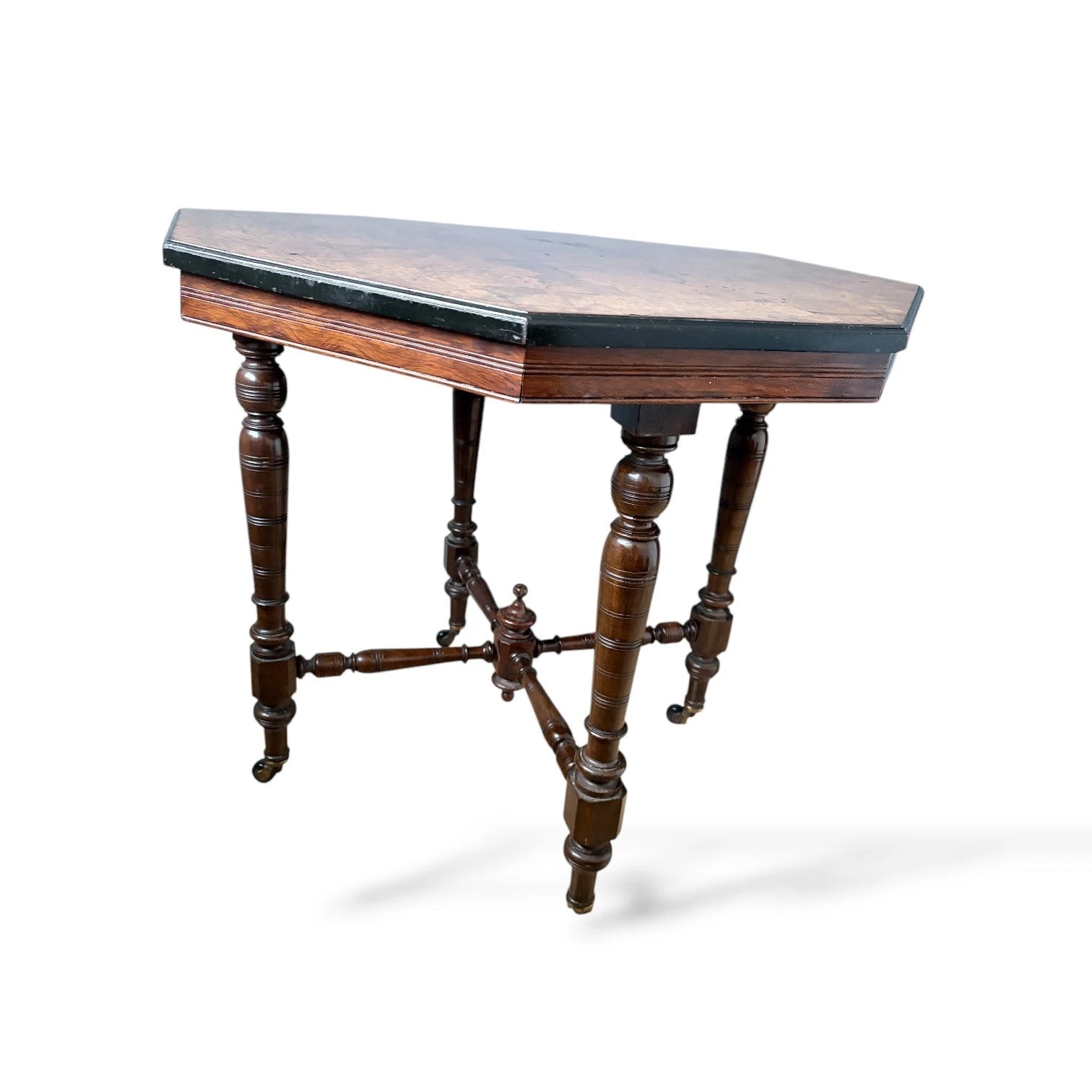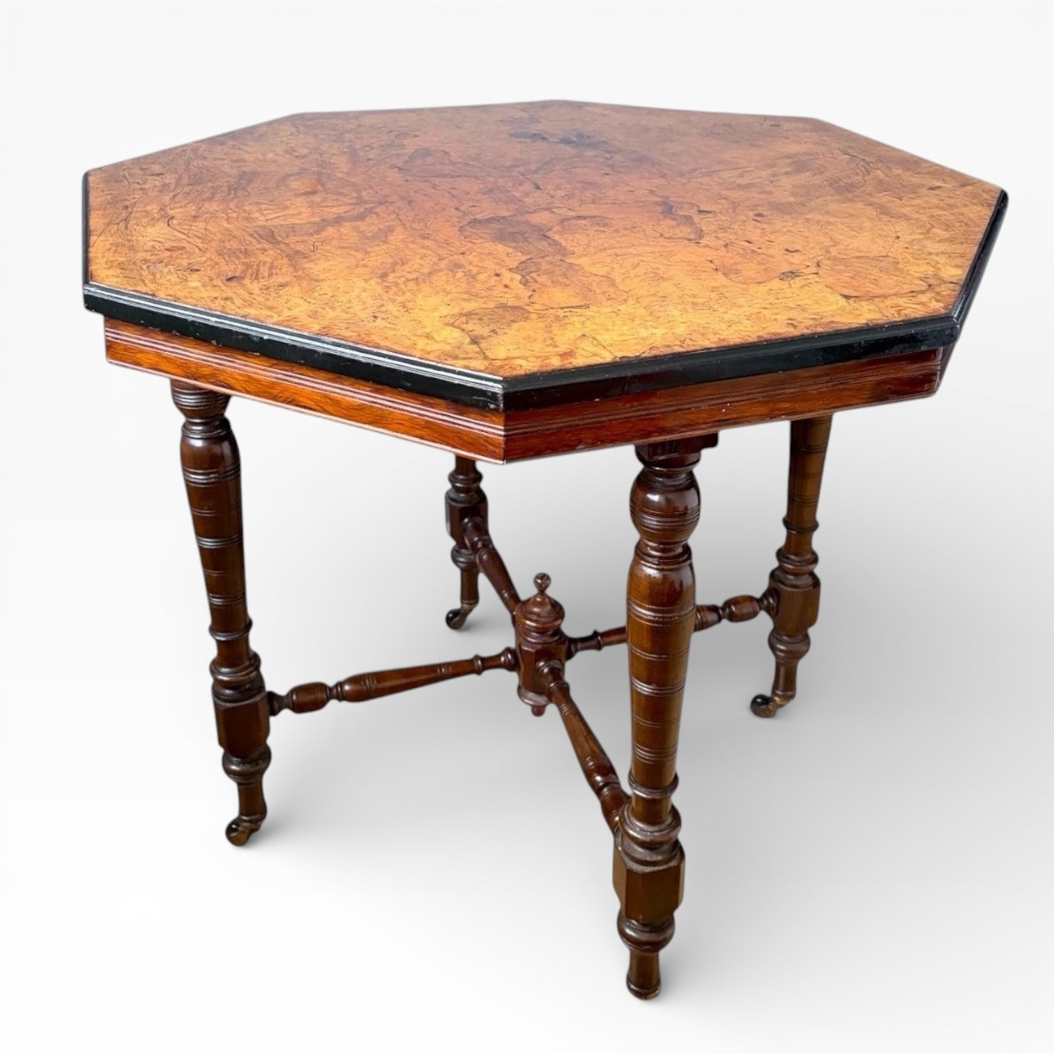 Antique Burr Walnut Table | Compact Octagonal Dining Table with Ebonised Edge & Mahogany Base