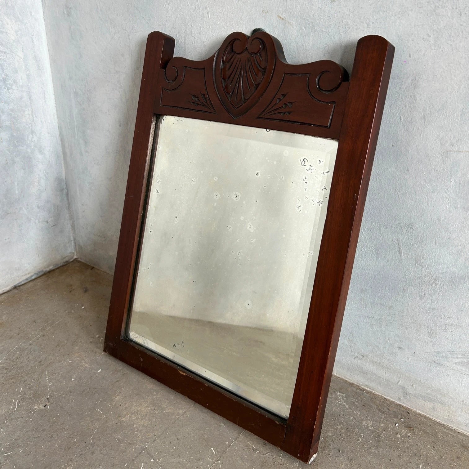 Antique French Wall Mirror - Carved Dark Oak Frame | Vintage Decorative Glass