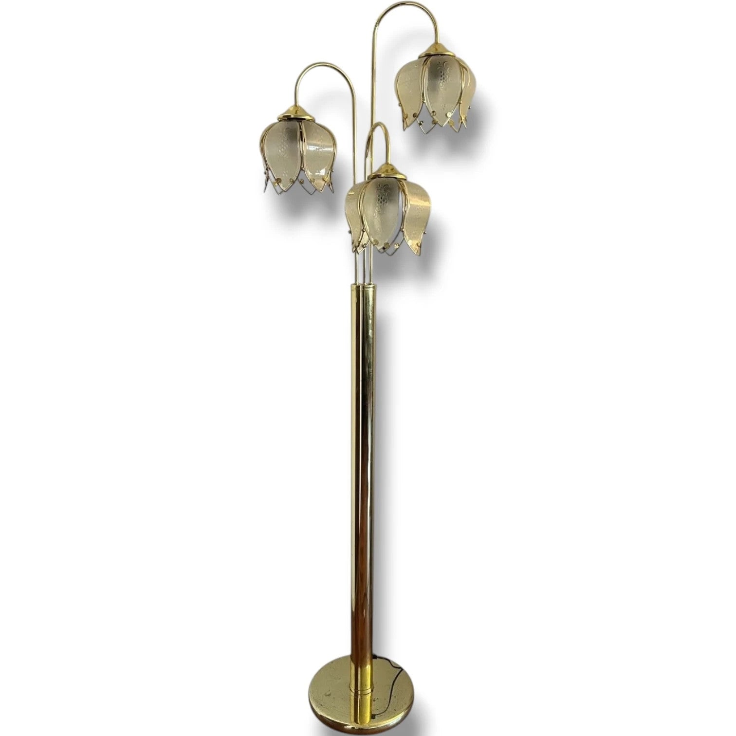 Art Deco Floor Lamp – Hollywood Regency Brass Lotus Lamp with Sculptural Glass Shades