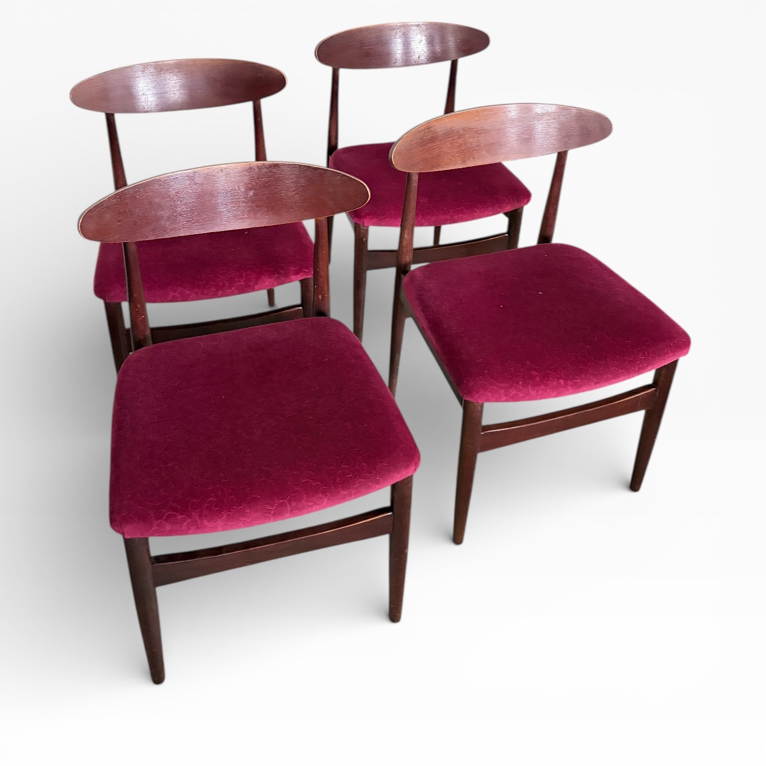 Teak Dining Chairs – Mid-Century Modern British Design | Burgundy Upholstered Set
