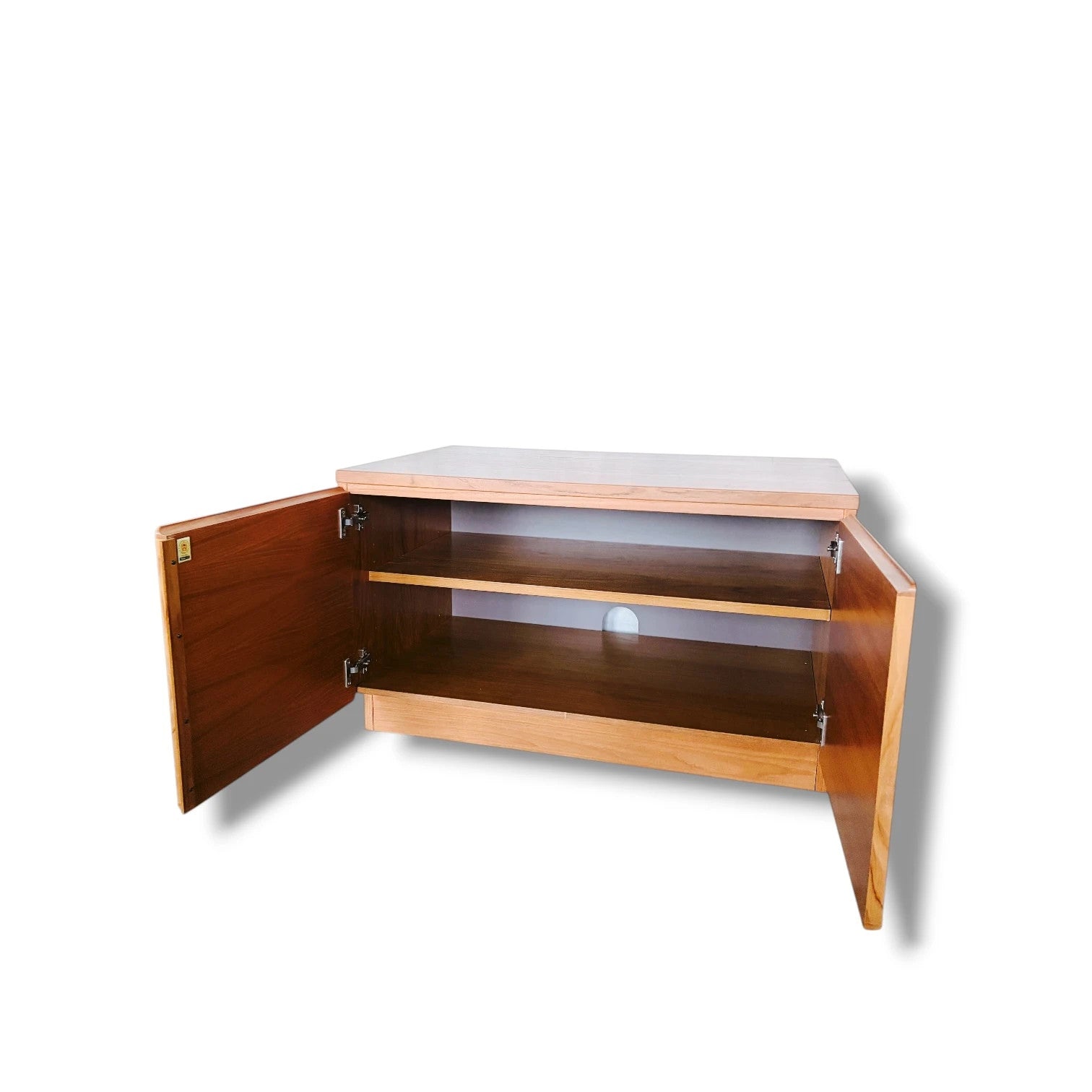 A versatile cabinet ideal for both modern and mid-century interiors. Use it as a low sideboard, vinyl storage unit, or compact media console. Its minimalist aesthetic pairs effortlessly with G Plan, McIntosh, and Ladderax designs.