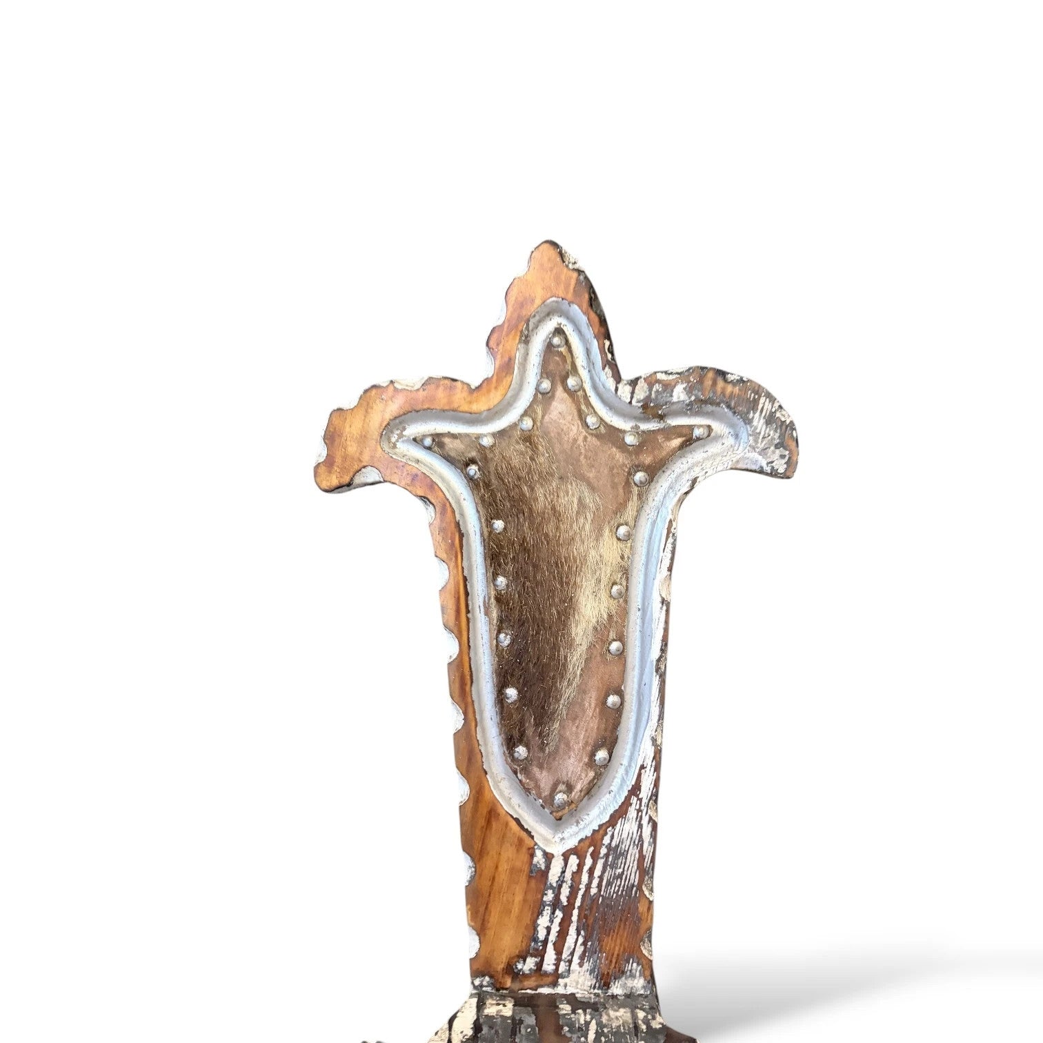 Brutalist Spanish Chair with Mohair Seat | Distressed Primitive Folk Art Chair
