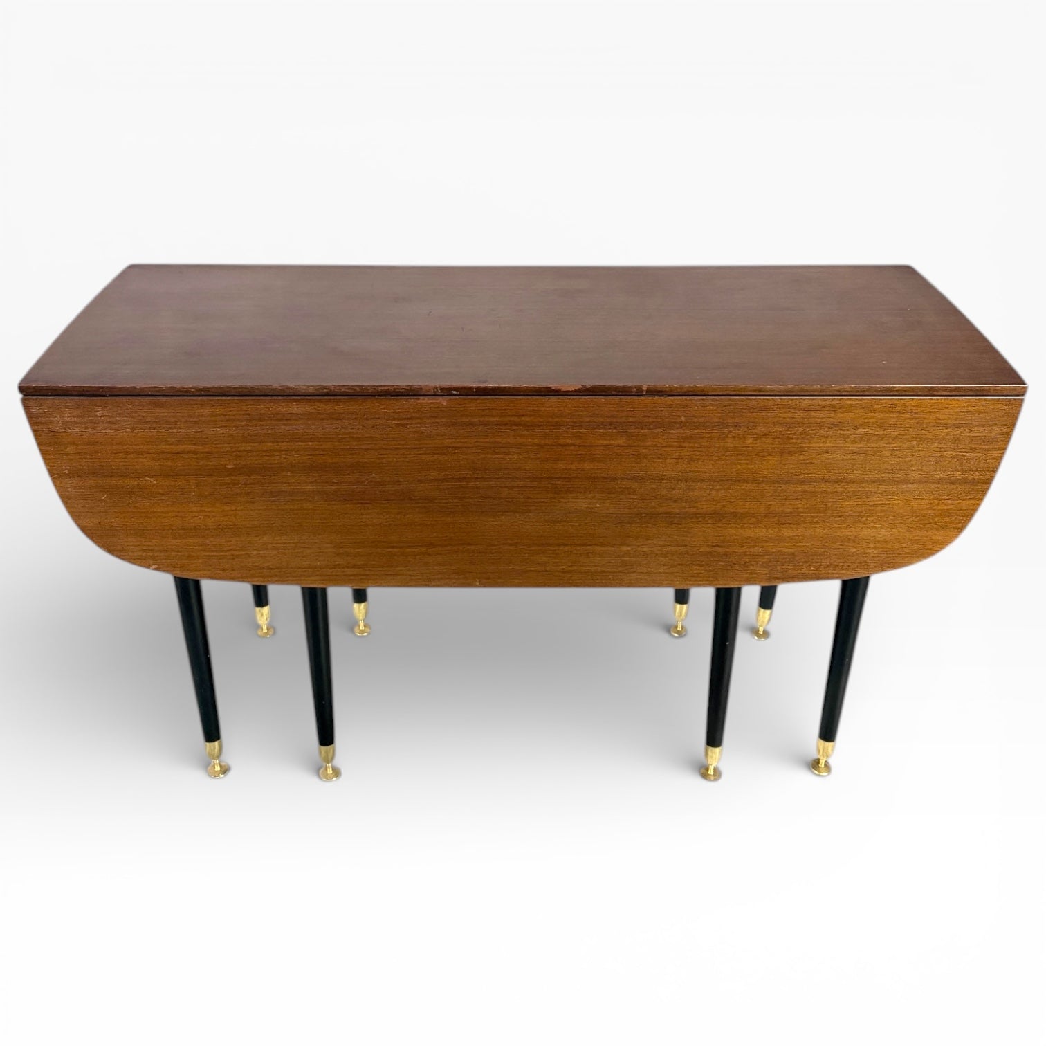 The G Plan dining table is a stunning mid century dining table that combines style and practicality for any retro dining room table setting. This vintage wooden table features a classic drop leaf table design with spider leg table construction, making it a perfect compact dining furniture solution for space saving table needs. Crafted from warm-toned timber, this folding dining table showcases atomic design furniture elements with tapered leg dining table styling and brass-capped feet, reflecting iconic British modernist table craftsmanship.