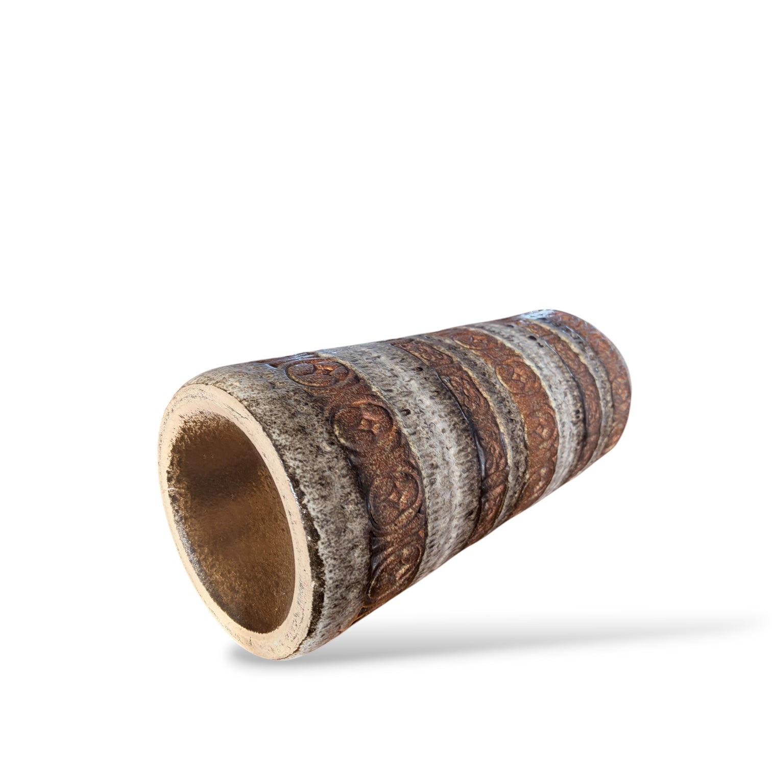 Enhance your living space with this unique textured ceramic vase that embodies the spirit of mid-century design fused with brutalist style vase aesthetics. Whether used as a statement floor vase or part of a curated collection of wabi sabi pottery, this brown cream vase stands out for its quality craftsmanship and timeless appeal. Explore more vintage treasures at Varius Vintage.