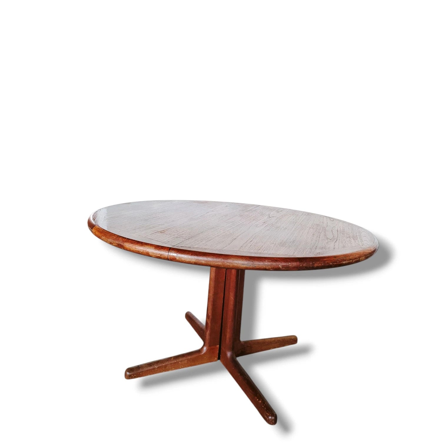 A beautifully crafted Danish mid-century dining table designed by Laurits M. Larsen, showcasing the elegance and practicality of Scandinavian modernism. This round table features a solid teak pedestal base and a richly grained teak veneer top, with smooth edges and exceptional craftsmanship. The timeless design comfortably seats four to six, making it ideal for both compact dining spaces and open-plan interiors. ⸻ Details • Designer: Laurits M. Larsen • Origin: Denmark • Date: Circa 1960s • Material: Teak veneer and solid teak base • Condition: Excellent vintage condition with light wear consistent with age ⸻ Dimensions • Diameter: 125 cm • Height: 73 cm ⸻ Styling Notes An enduring piece of Scandinavian design, this table’s organic form and minimal silhouette pair perfectly with Danish dining chairs by Niels Møller, Arne Vodder, or Erik Buch. A stunning centrepiece for any mid-century or modern home. ⸻ Delivery & Collection • UK delivery available – please enquire for a quote • Collection welcome from West Yorkshire • More Danish and Scandinavian design at variusvintage
