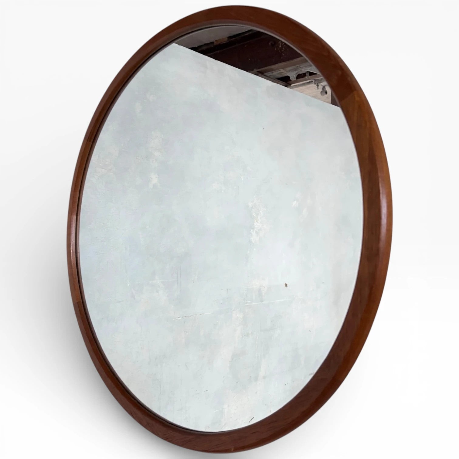 Mid Century Teak Mirror - Danish Round Wall Mirror with Solid Frame, Vintage