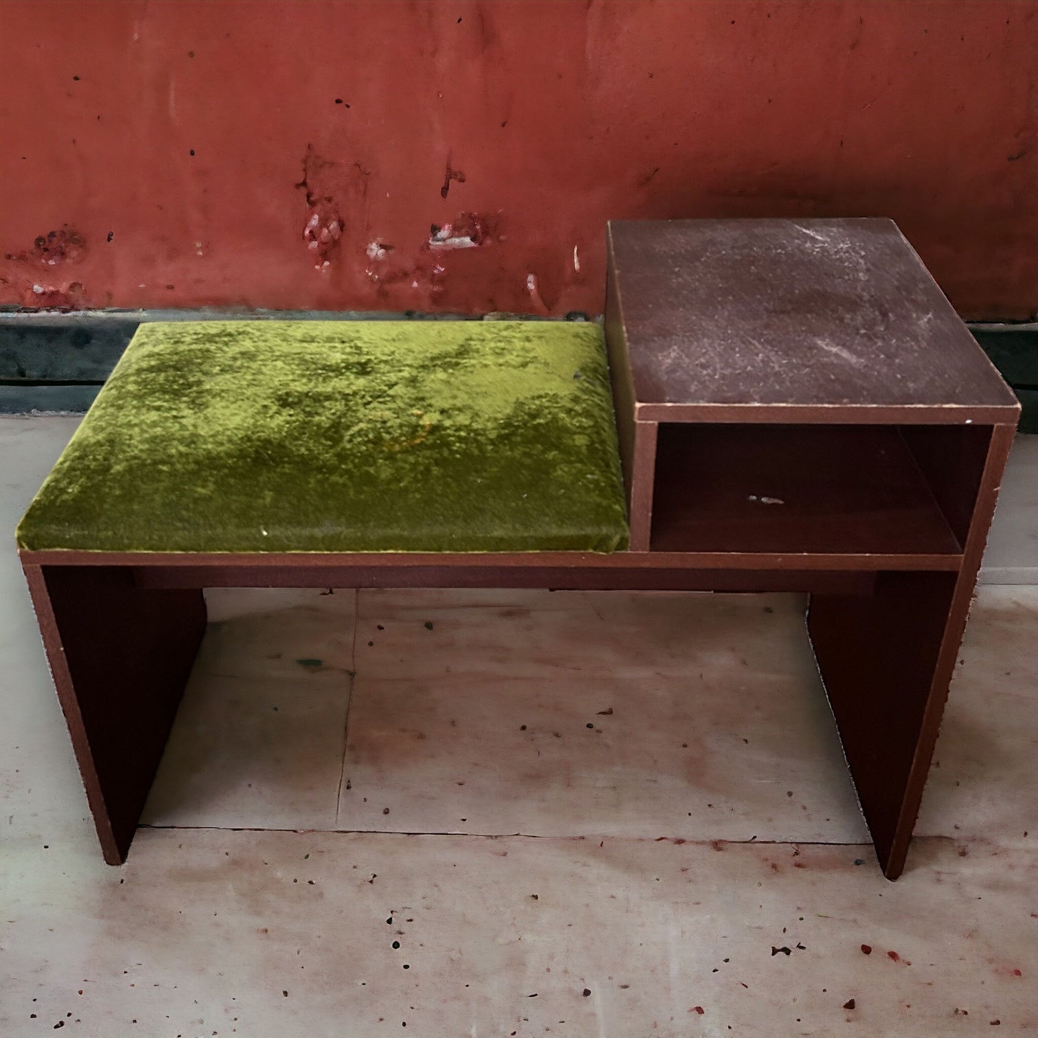 Mid Century Dark Wood and Green Telephone Seat Table
