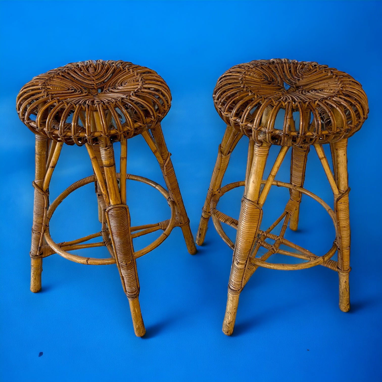 mid century Franco Albini Bamboo Rattan Stools