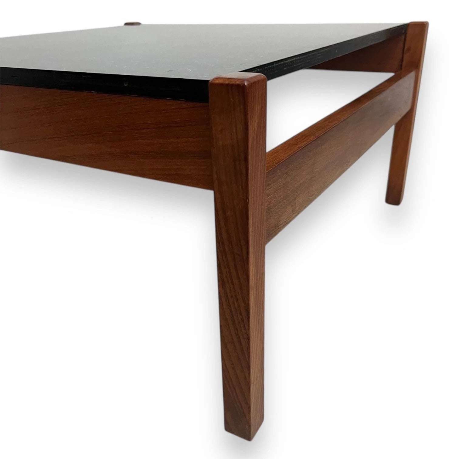 A sleek and timeless mid-century teak and black Formica coffee table by Guy Rogers, circa 1960s. This compact square design perfectly captures the clean lines and craftsmanship of British modernist furniture. The combination of warm teak tones and a durable black Formica top makes this an ideal piece for both practical use and stylish interiors — great for small spaces, living rooms, or retro-inspired homes. Dimensions: • Width: 61 cm • Depth: 61 cm • Height: 32 cm Condition: Vintage condition with light age-related wear. Structurally solid with a clean surface and rich teak colour. Highlights: • Iconic 1960s Guy Rogers craftsmanship • Durable Formica top — ideal for everyday use • Beautiful teak frame with minimalist design • Compact and functional for modern living spaces Perfect for: – Mid-century modern interiors – Small living rooms or apartments – Collectors of British furniture design ✨ A classic example of understated mid-century elegance — practical, stylish, and built to last.