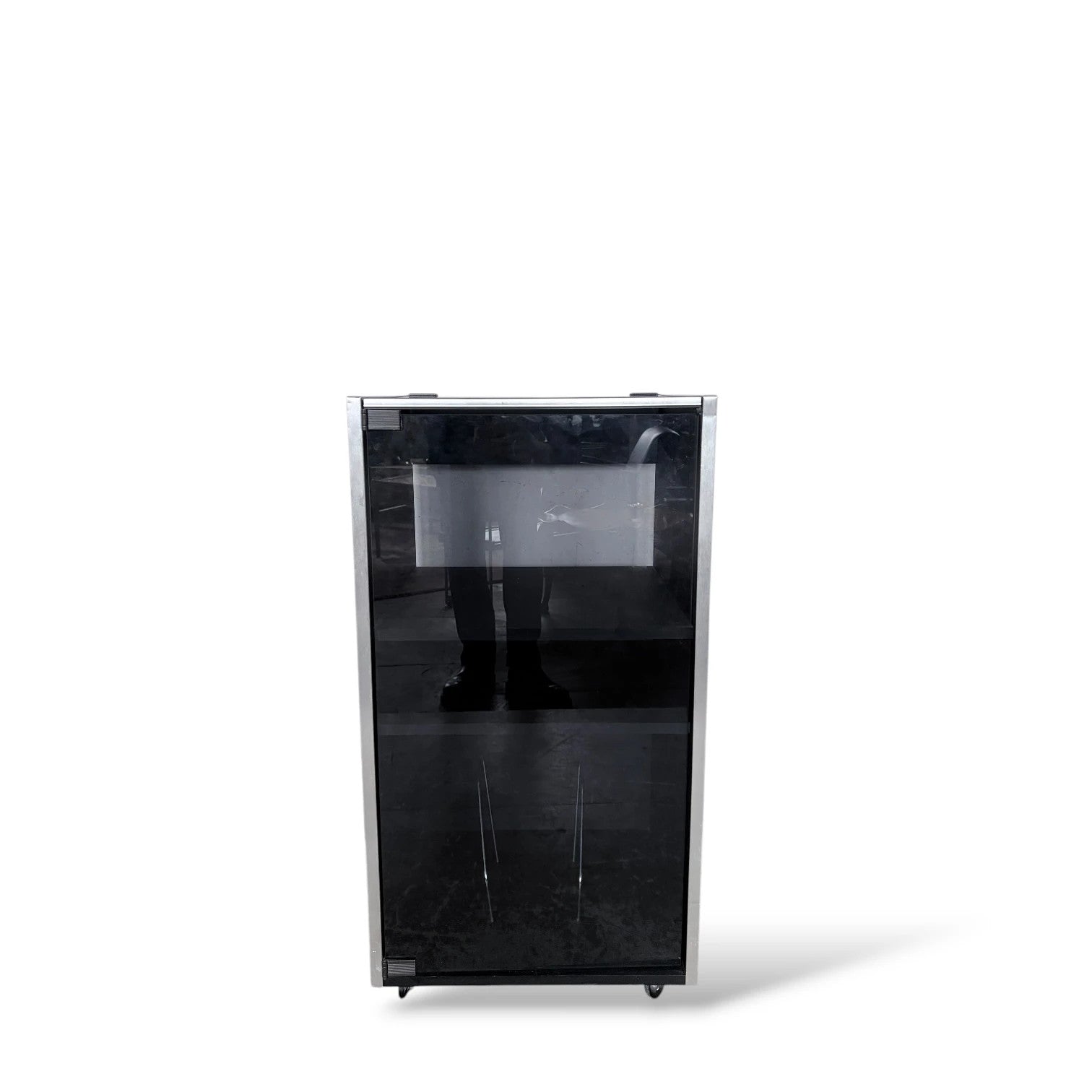 Mid-Century Hi-Fi Cabinet | Smoked Glass & Wood Media Unit | Retro Record Player Stand A stylish mid-century Hi-Fi cabinet featuring a smoked glass door, wood veneer casing, and metal trim detailing. Designed for vinyl enthusiasts and retro interiors, this piece offers ample storage for a record player, amplifier, and vinyl collection, with adjustable internal shelving and chrome record dividers. The smoked glass door opens smoothly to reveal two internal shelves and a top compartment — ideal for media setup or display. Dimensions: • Height: 84 cm • Width: 45 cm • Depth: 42 cm Excellent vintage condition with minor signs of age and wear.