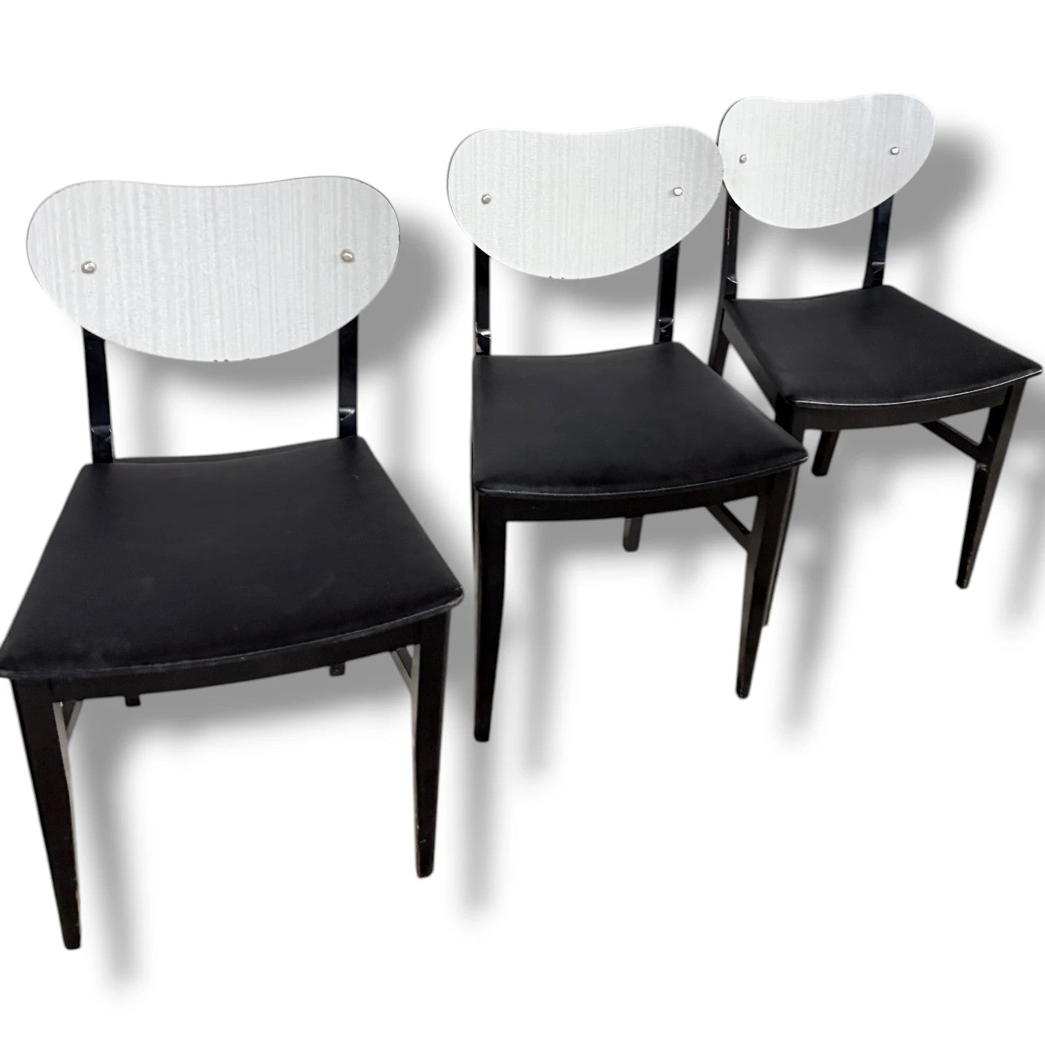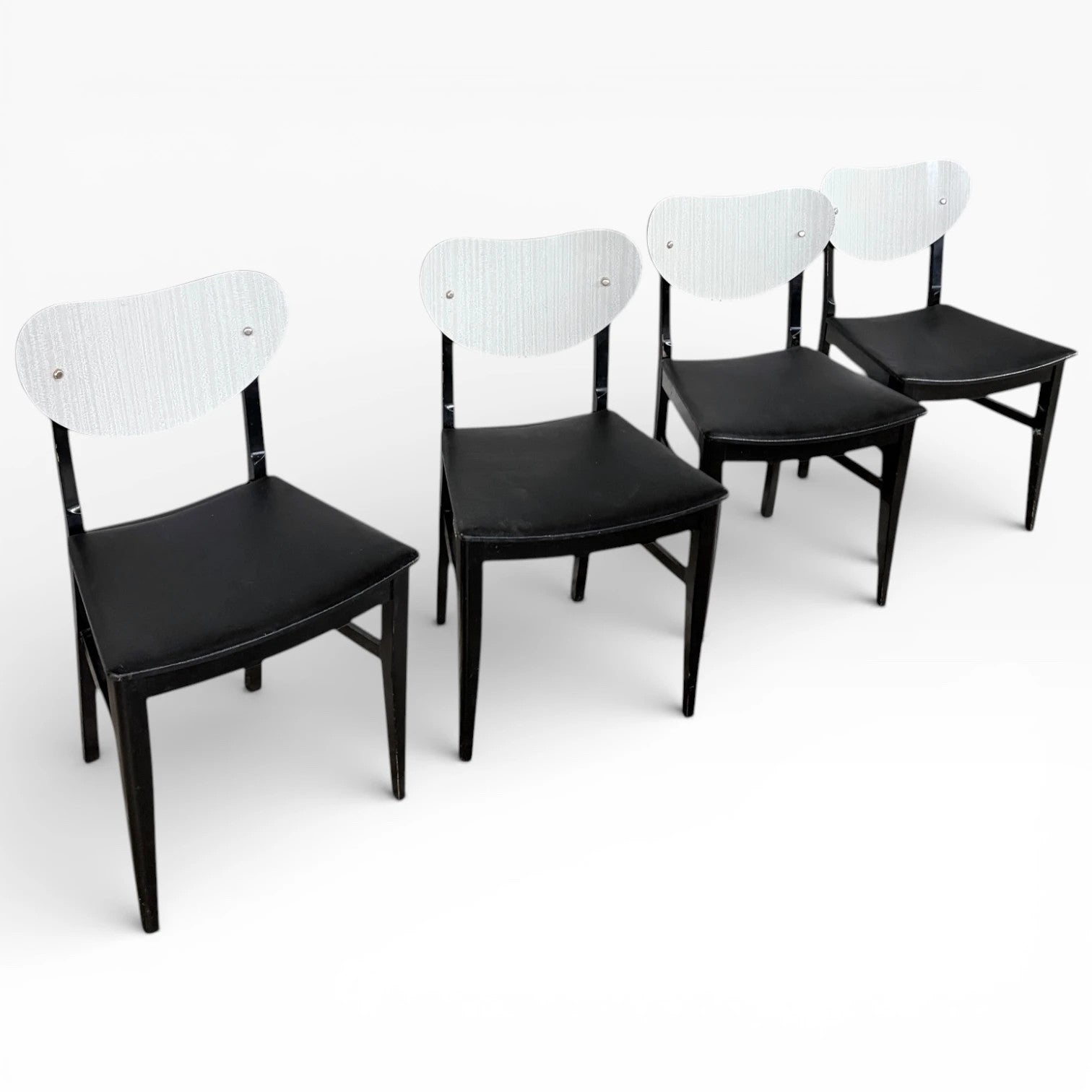 Mid-Century Dining Chairs | Set of Four Vintage White Formica & Black Vinyl Seats