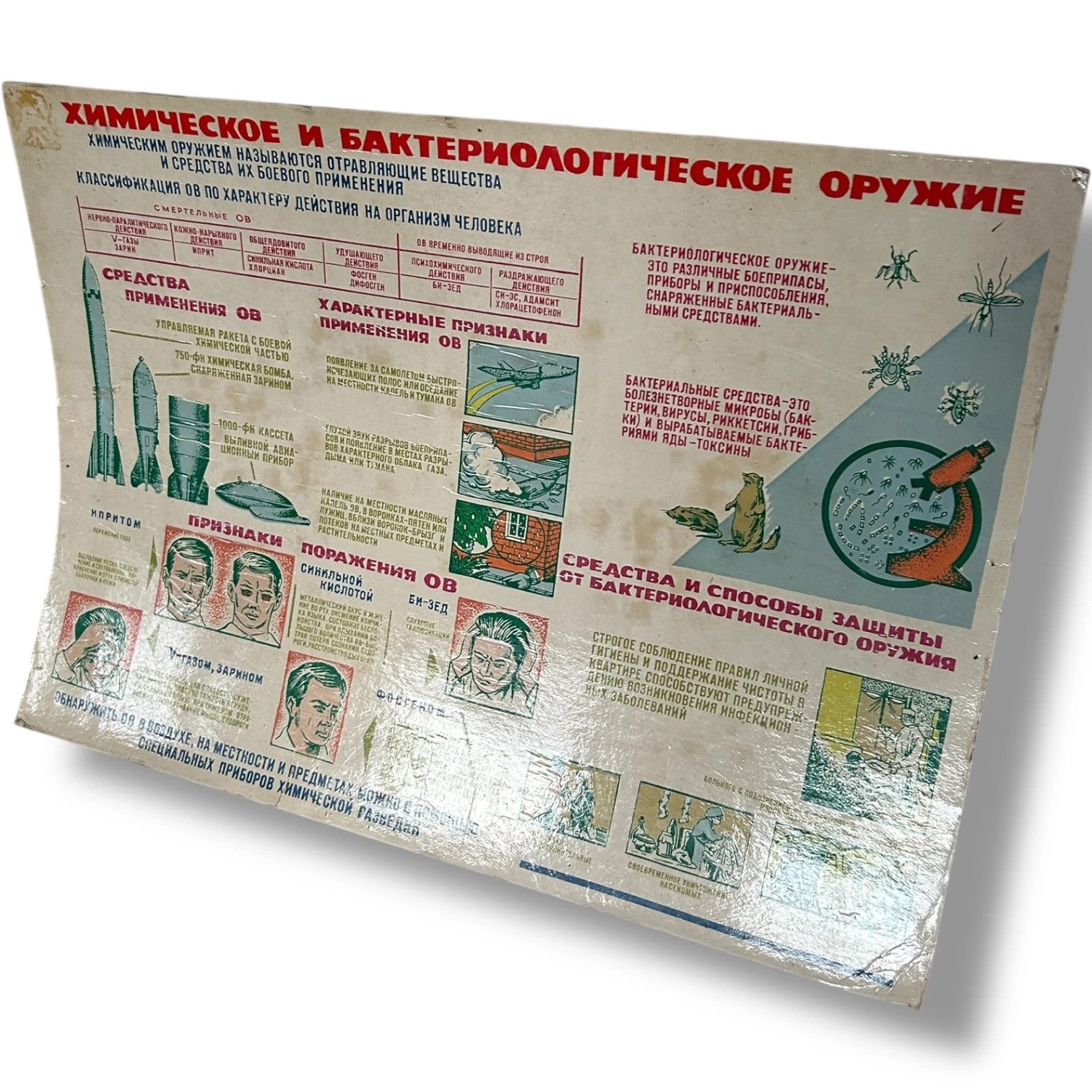 Original Soviet Cold War Poster – Chemical & Bacteriological Warfare Educational Chart Vintage