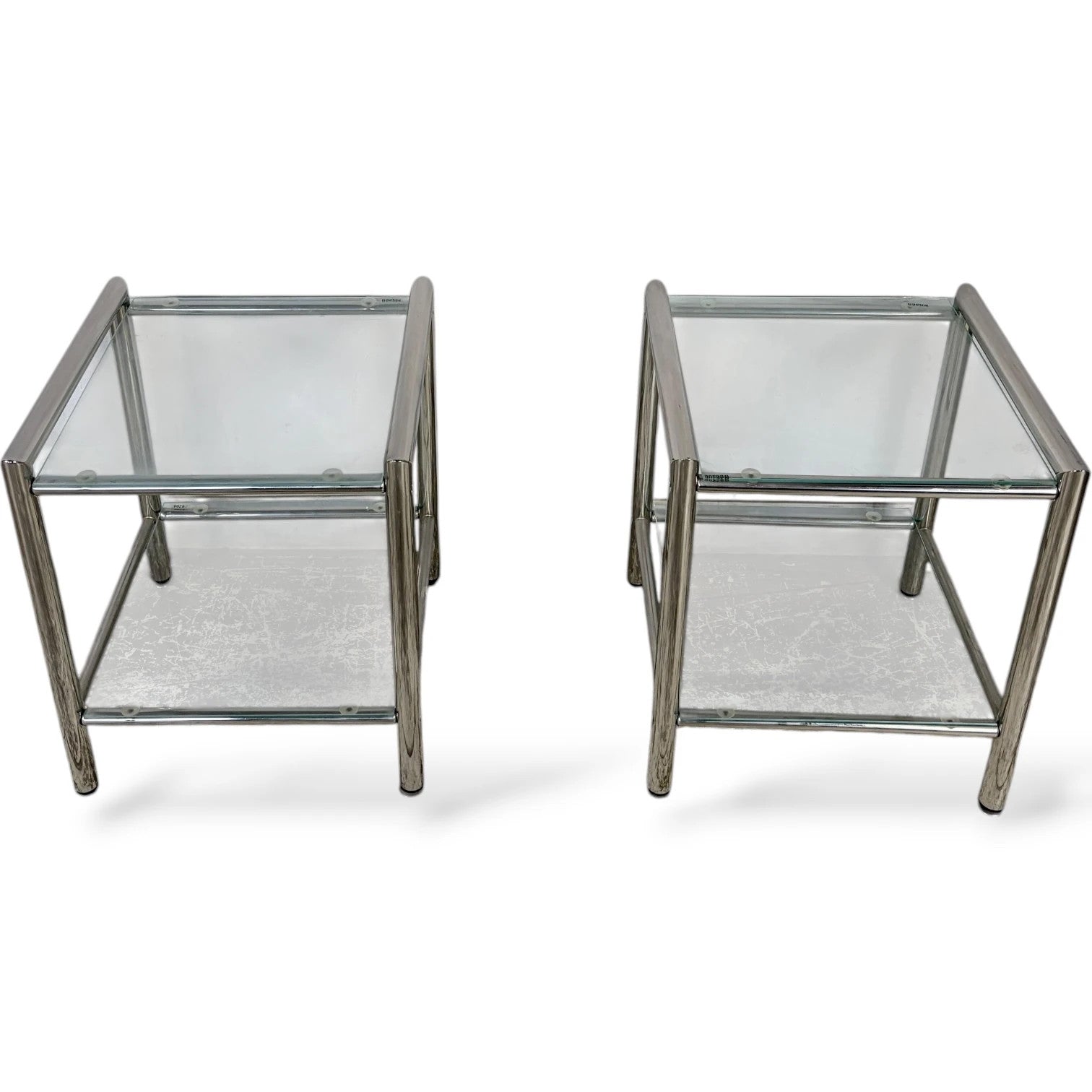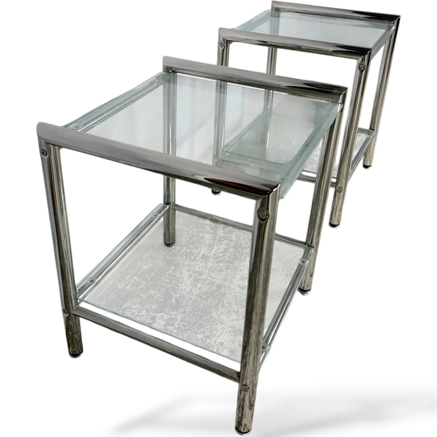 Chrome Glass Bedside Tables – Mid Century Modern Square Two Tier Nightstands