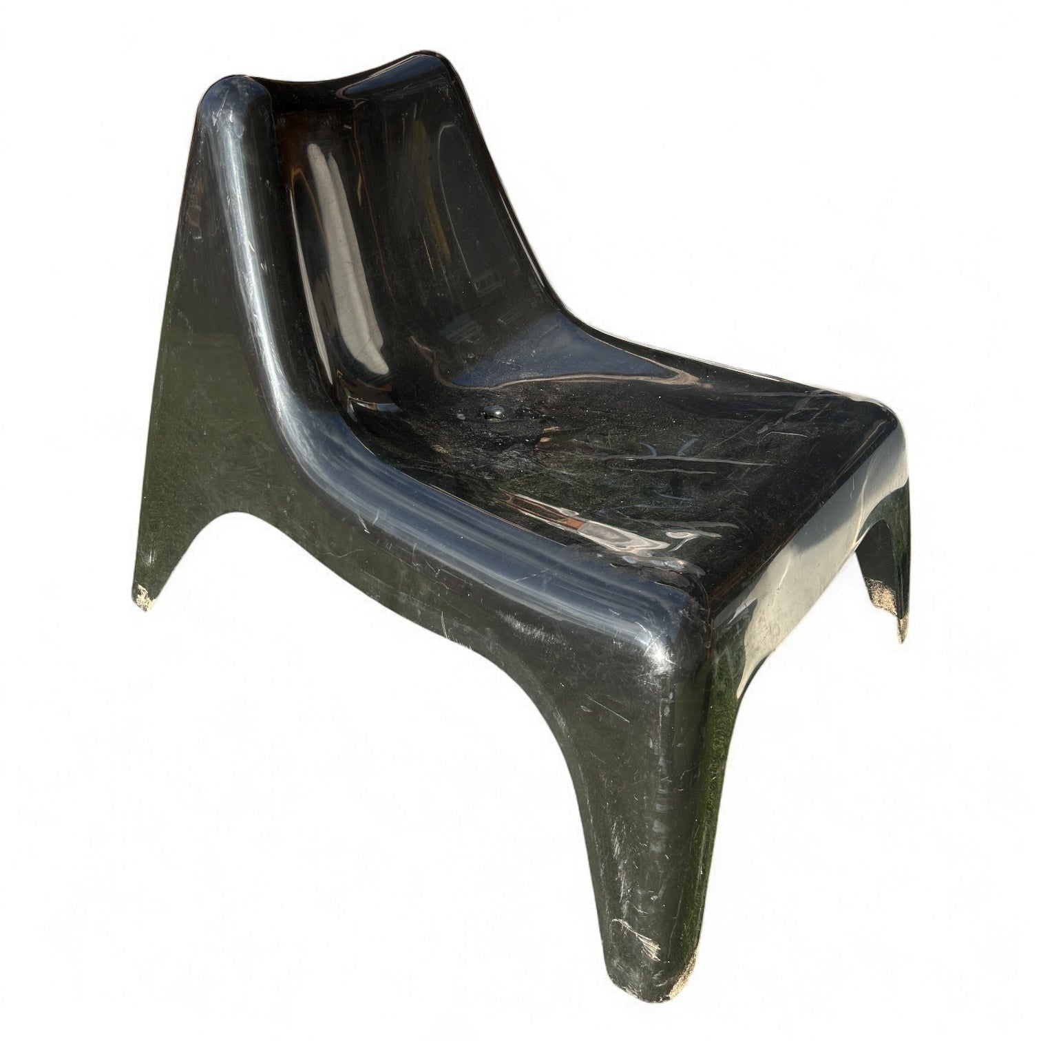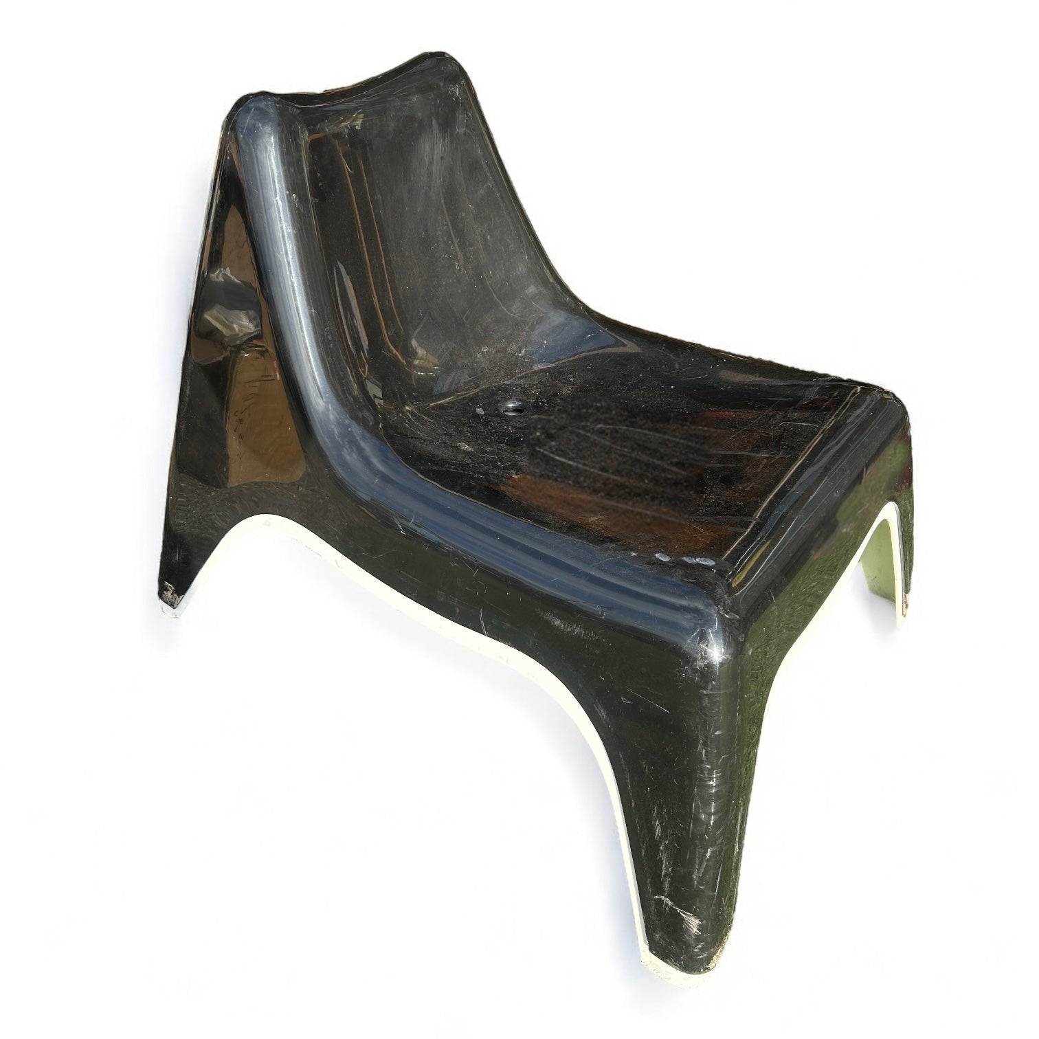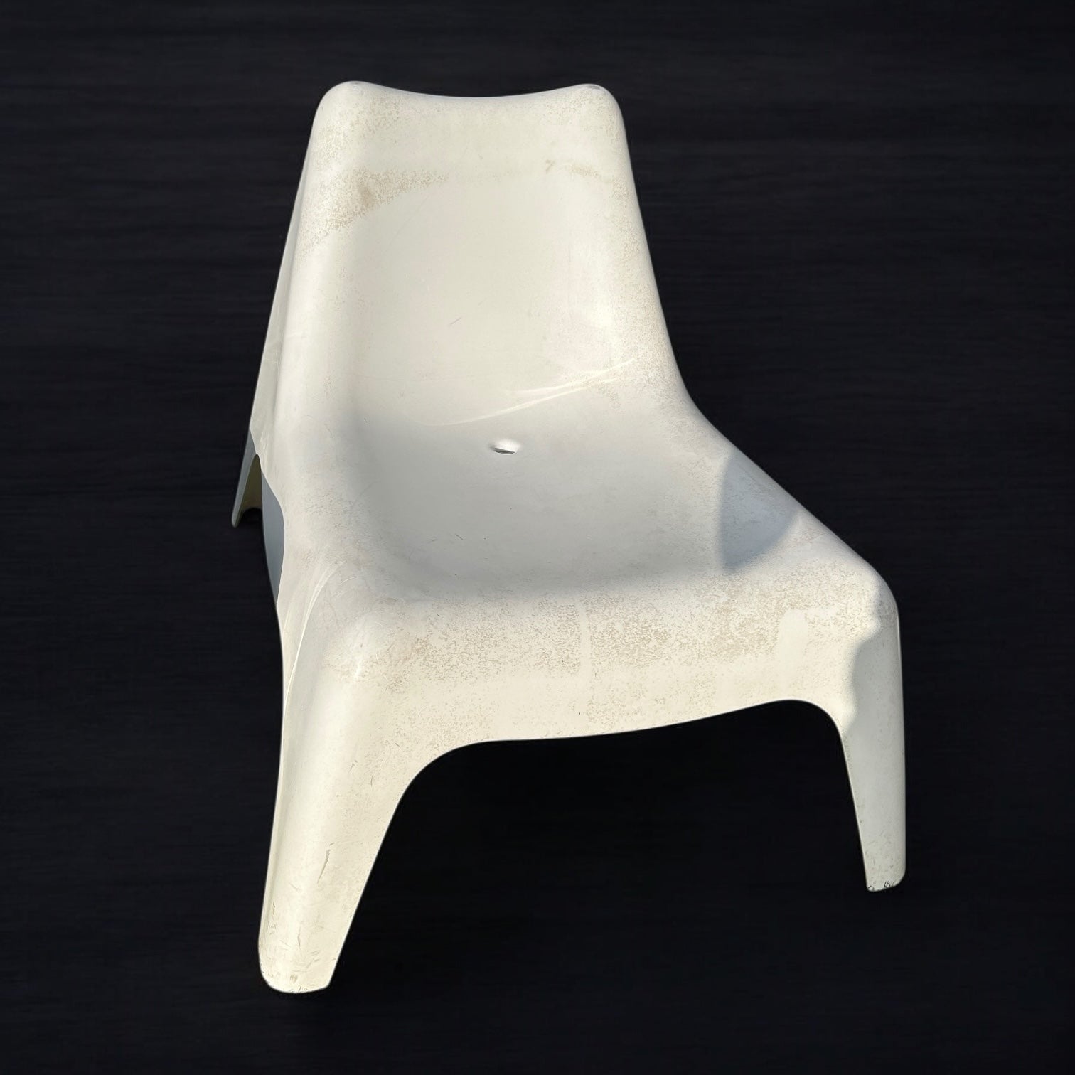 A stylish pair of original IKEA PS VÅGO chairs in black and white, designed with a bold sculptural form and smooth curves.