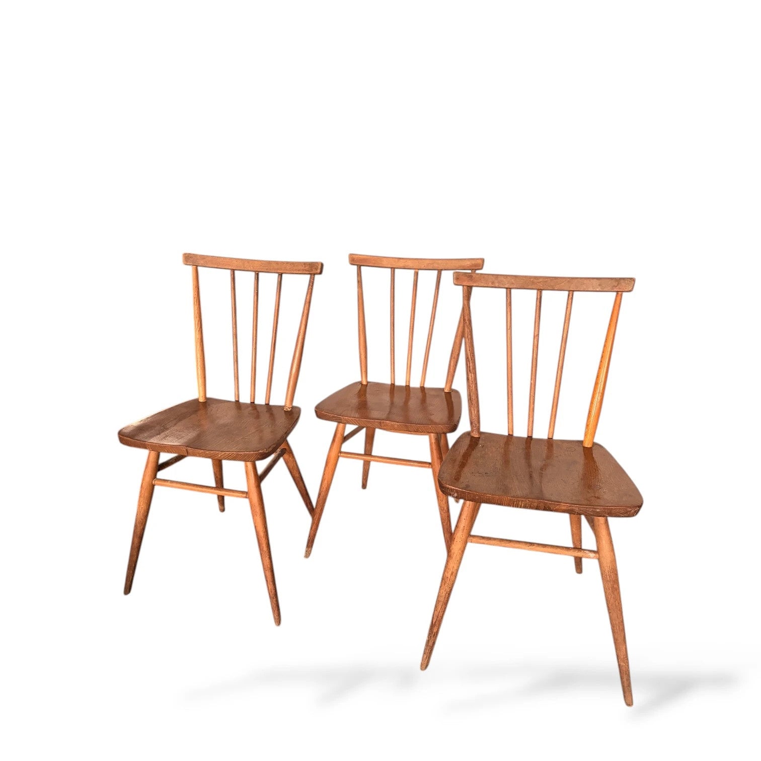 Set of 3 Vintage Ercol Stickback Chairs – Mid-Century Modern Elm & Beech