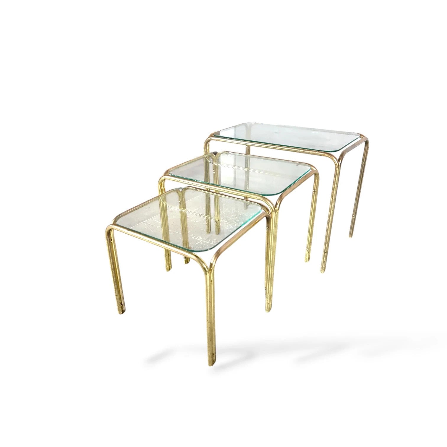 Vintage Brass and Glass Nest of Tables – 1970s Hollywood Regency Style