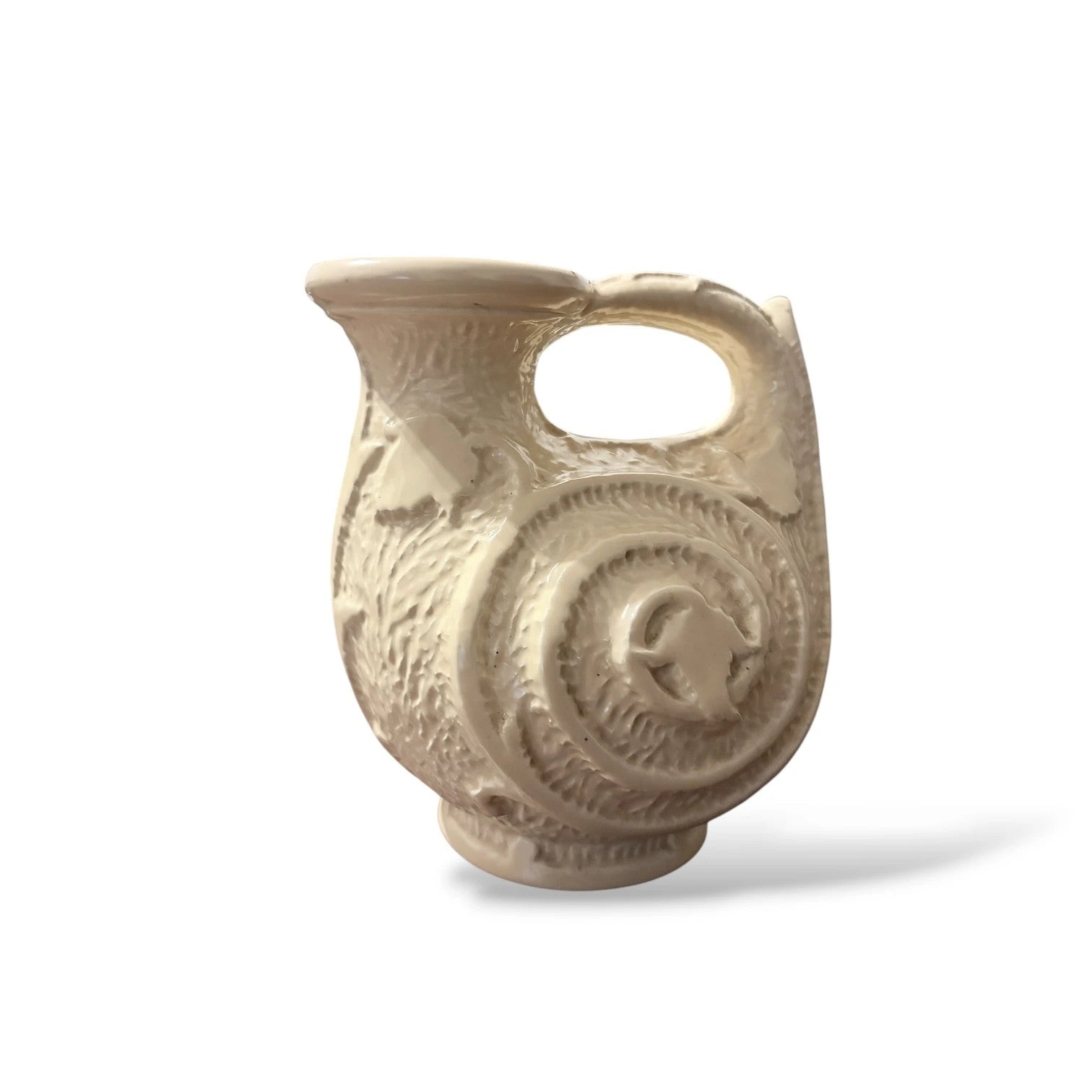 This charming Vintage Burleigh Ware cream ceramic jug embodies timeless 1930s Art Deco elegance. Crafted from durable English pottery, its smooth creamy finish complements any collection or kitchen décor. Perfect for serving or displaying, this jug adds a touch of classic sophistication and heritage to your home, making it both a functional and stylish treasure from a bygone era.