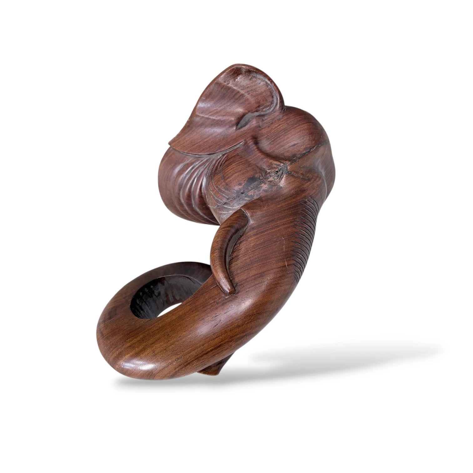 This striking hand-carved elephant sculpture brings timeless elegance to any space. Crafted from richly ebonised hardwood, each piece showcases intricate artisanal detail and the natural character of vintage craftsmanship. The deep, lustrous finish highlights the sculptural form, creating dramatic shadows that evolve throughout the day. Perfect for collectors and design enthusiasts, this wall-mounted statement piece adds sophistication and cultural charm to living rooms, studies, or galleries. A conversation starter that celebrates traditional woodcarving techniques and enduring style.