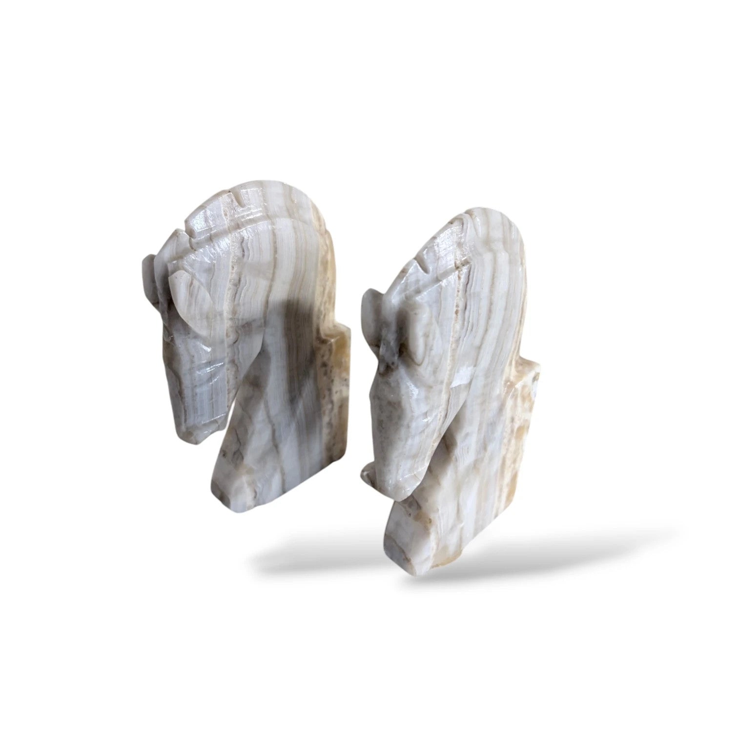 Vintage Onyx Horse Head Bookends – Natural Stone Carvings