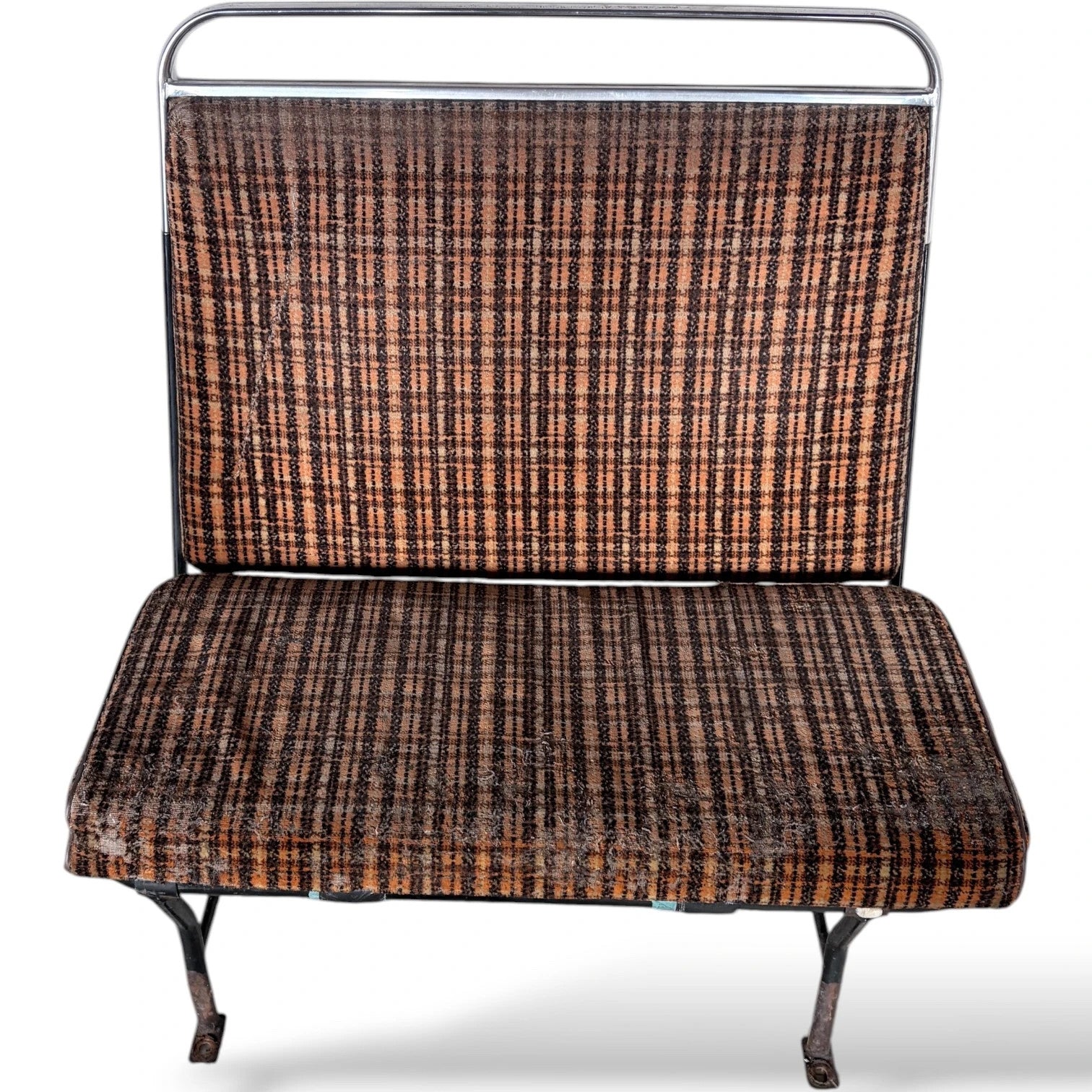 Vintage Orange Check Bus Seat – Industrial Mid-Century Bench