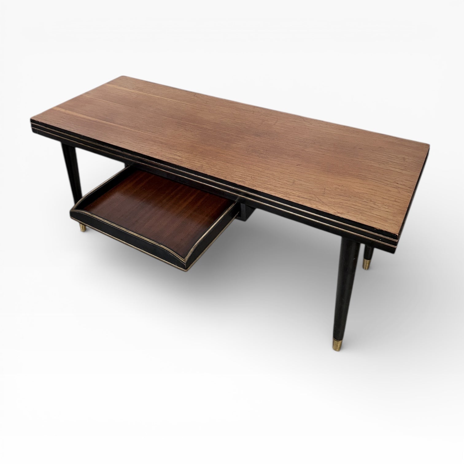 This vintage space age coffee table combines iconic mid-century modern style with practical design, delivering a striking low-profile table that enhances any living space. Crafted as a vintage space age coffee table, it features a removable serving tray that adds versatility and convenience for entertaining or display. Measuring 102cm wide, 40cm deep, and 41cm high, this retro modern low table balances form and function to create a centerpiece that fits perfectly in design-led homes.