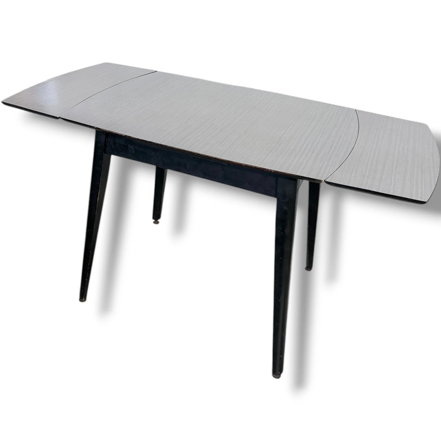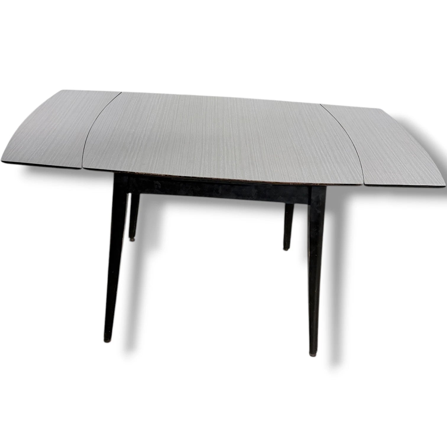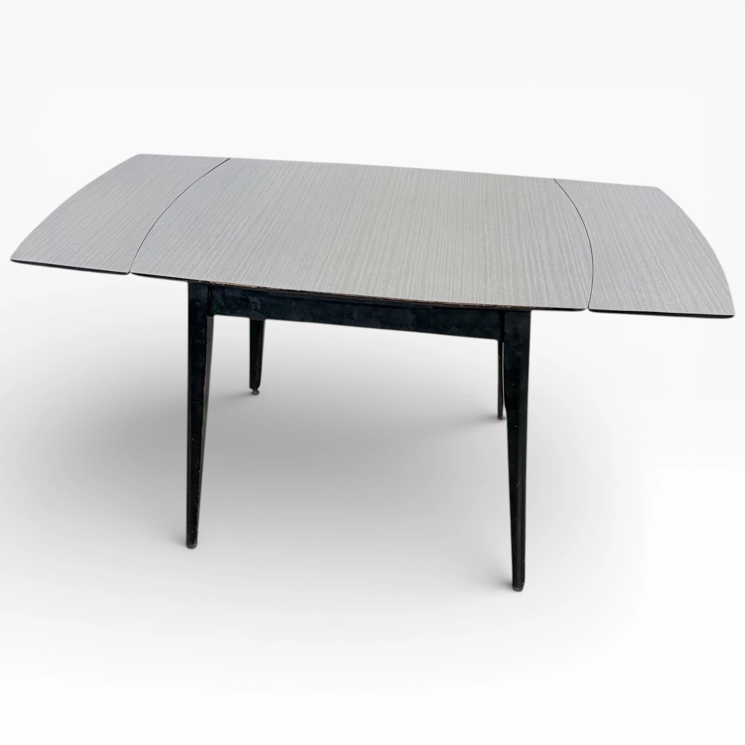 Extendable Dining Table – White Formica Top with Black Legs | Mid-Century Vintage Design